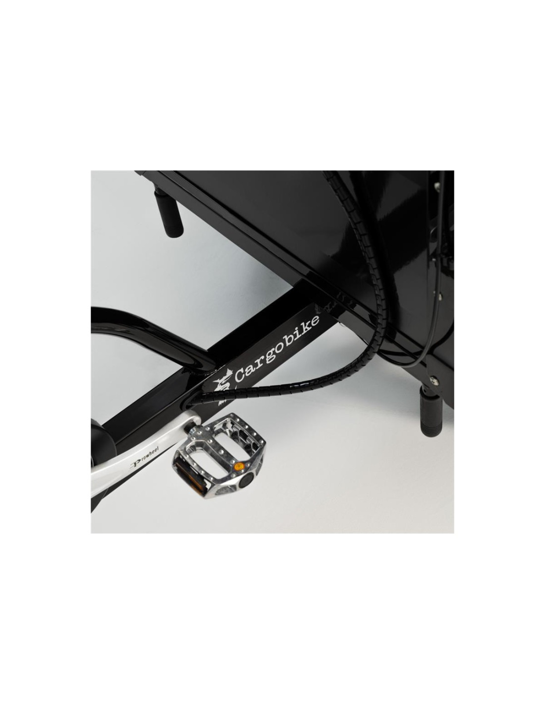 I vårt senaste utförande har vi försett denna lastcykel med helgjutna fälgar. Växelsystemet består av 6 utanpåliggande växlar från Shimano. Den underhållsfria motorn på 45Nm från Ananda är monterad i bakhjulet och cykeln är en av de få lastcyklarna i världen som är TÜV-godkänd och är konstruerad för att ge rejäl stabilitet i tyngdpunkten. Skivbromsarna är hydrauliska både fram och bak.