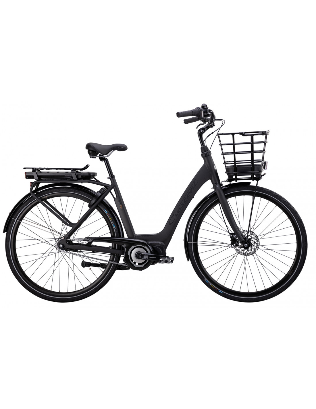 En mjukt spinnande centermotor från Shimano som gör cykelupplevelsen till något alldeles speciellt. Den hjälper dig vid start, uppför backar, i motvind eller när du promenerar bredvid med hjälp av batteriet på 400 Wh. Systemet känner av ditt pedaltryck och anpassar effekten därefter. Vilken nivå av hjälp du vill ha bestämmer du med en knapptryckning på styret, och det är precis lika enkelt som att byta växel. Ramens låga insteg gör det enkelt att kliva på, och av. Frampakethållaren och den robusta pakethållaren bak är utrustade med AVS-systemet som gör det möjligt att klicka på AVS-väskor eller AVS-korgar både fram och bak. På styret sitter en display som visar vald effekt, hastighet, batteriets laddnivå och hur långt den kraften kan ta dig. Batteriet är enkelt att ta loss. Fullt utrustad elcykel med stöd, godkänt ramlås och belysning.