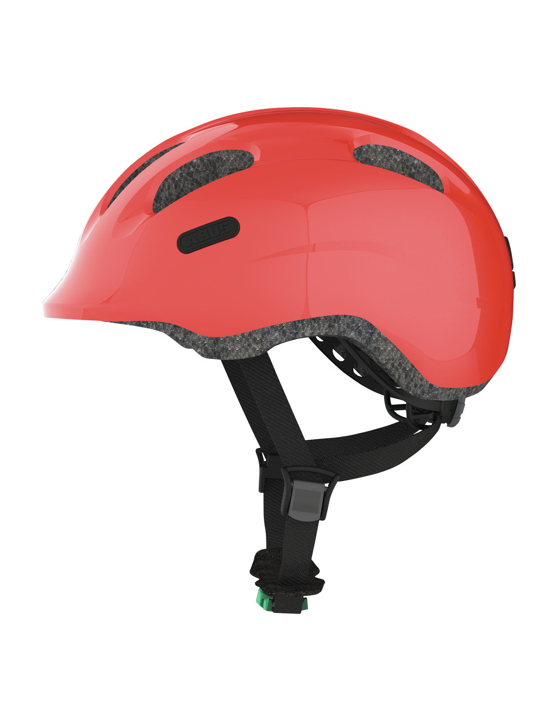 Hjälm smiley 2.0 50-55 cm röd med grönt spänne från Abus.