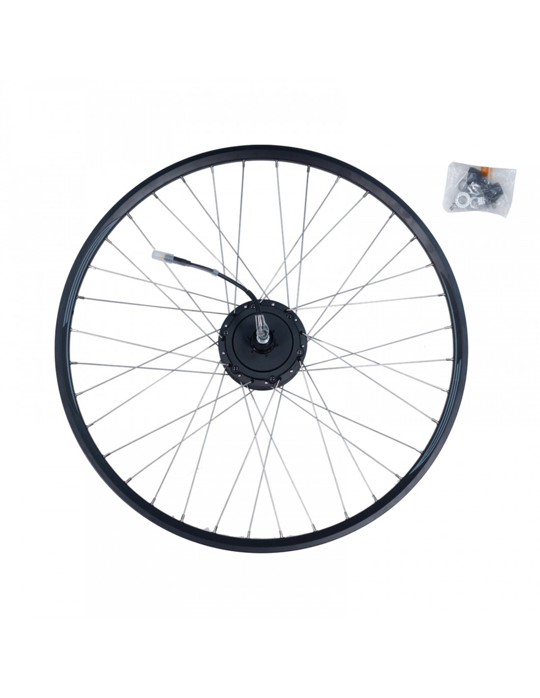 Bakhjul 28 tum (622) med borstlös navmotor från Bafang (8Fun) 36V 250W.