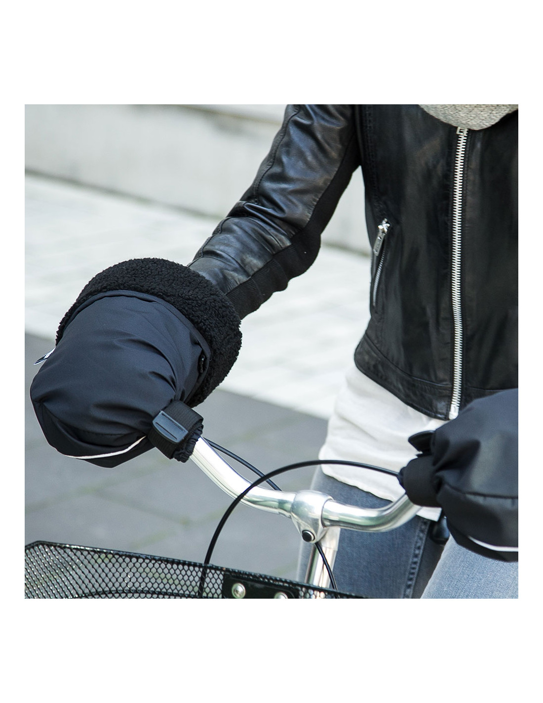 Cykla bekvämt med händerna skyddade hela vintern med WEATHERGOODS Pogies – de oumbärliga handskarna för stadscykling.