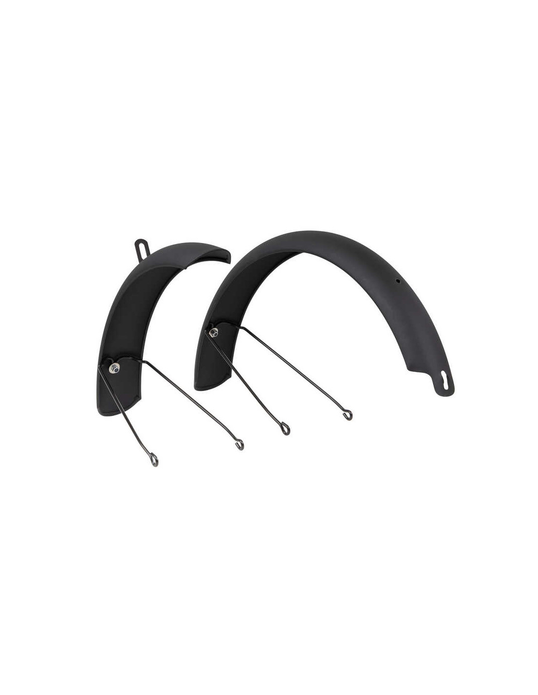 Genom att välja skärmar i robust aluminium får du en hållbar produkt som står emot både väder och vind betydligt bättre än enklare plastalternativ, samtidigt som den mattsvarta finishen ger cykeln ett stilrent och enhetligt utseende.