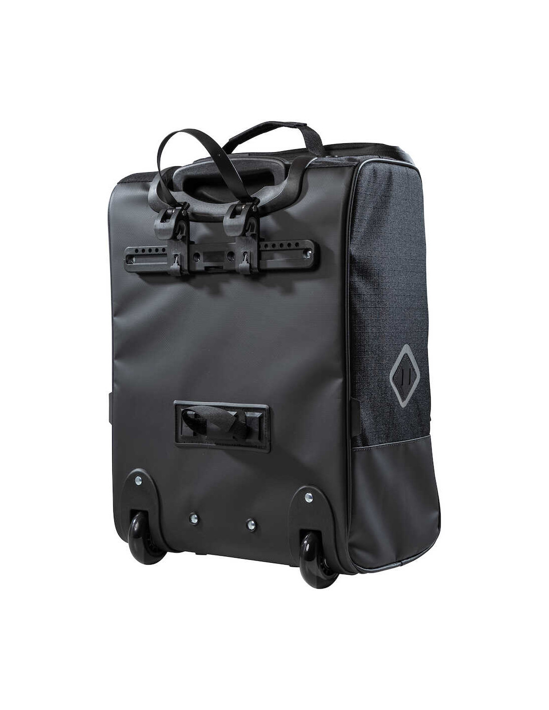 Kabinväska eller dramaten? Drama Wheel från Spectra Pronto är en cykelväskan med hjul och teleskophandtag som kan bli både och. Rymmer ombyte, dator och det viktigaste du behöver ha med dig när du tar cykeln till tåget eller vidare mot flyget. Lika smidigt tar du denna väska med till och in i mataffären. Separat fack för elcykelbatteri liksom fack för dator och för småförvaring. Du hakar enkelt på på väskan på sidan av pakethållaren bak på cykeln. TIllverkad i material som gör dig rustad för alla väder. Drama wheel har reflekterande designelement och kan användas tillsammans med Spectras varjerlås. Reflekterande regnskydd ingår.
